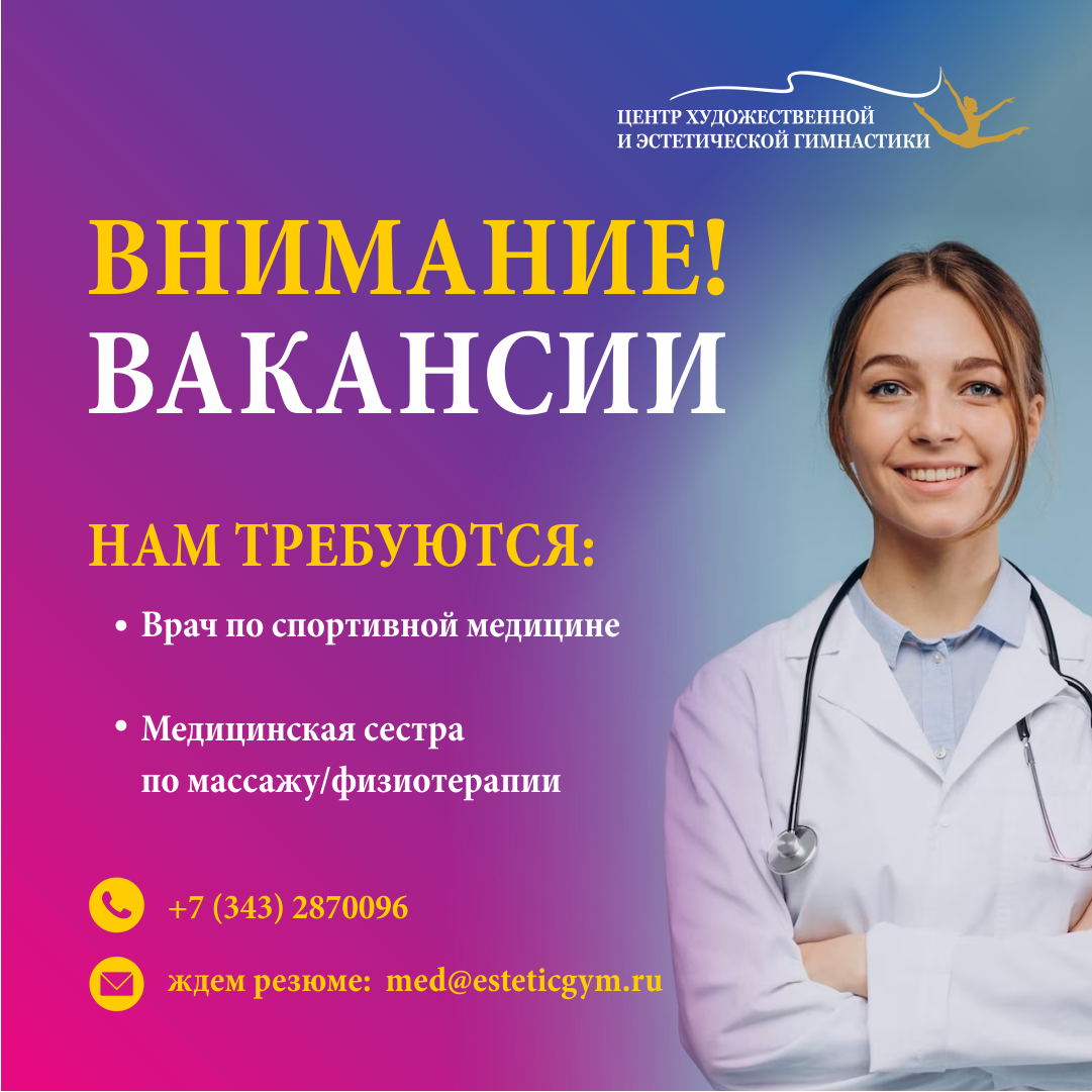 В нашу команду требуются медицинские работники: врач по спортивной медицине и медицинская сестра по массажу и физиотерапии.